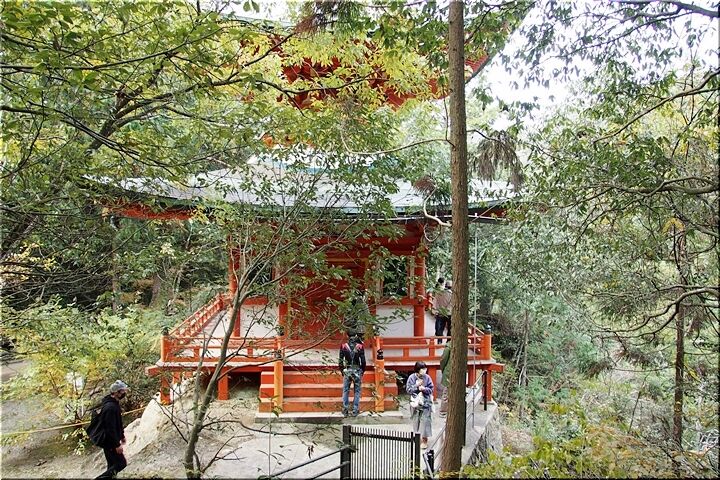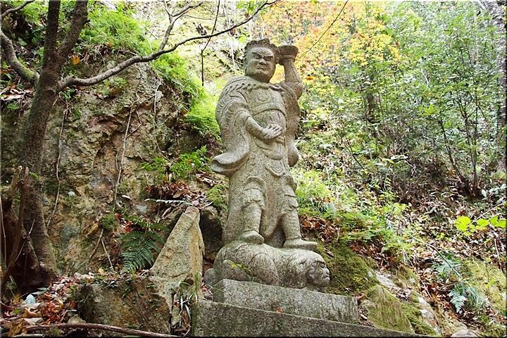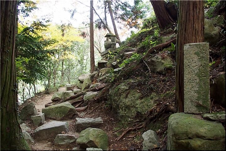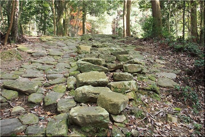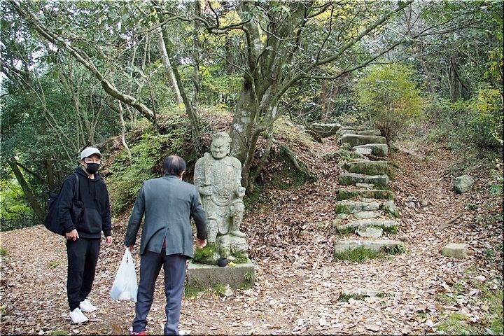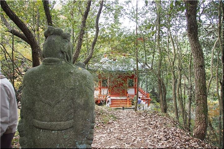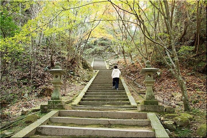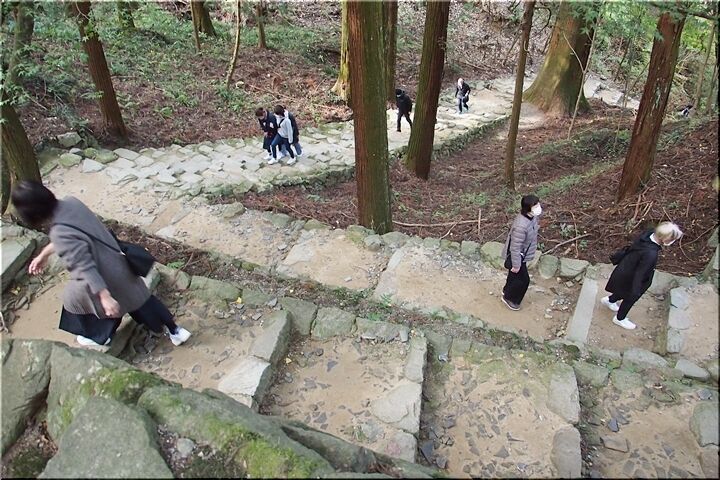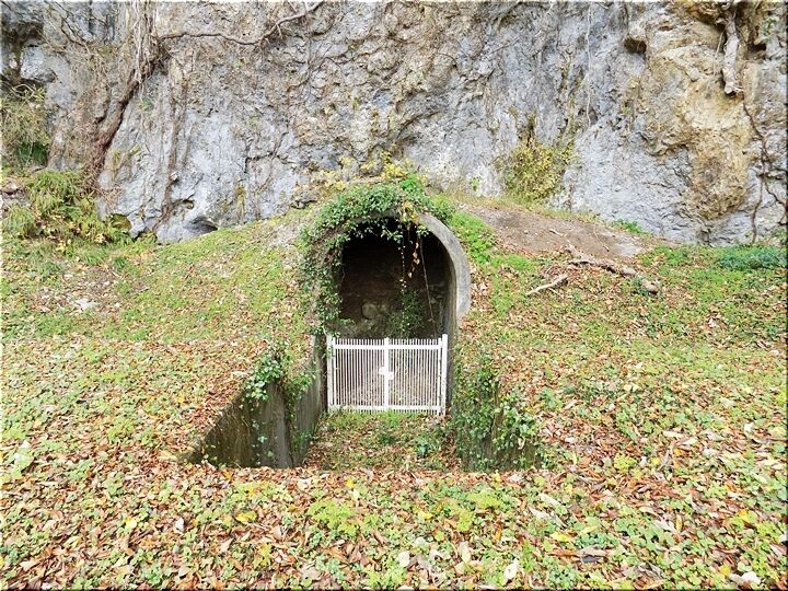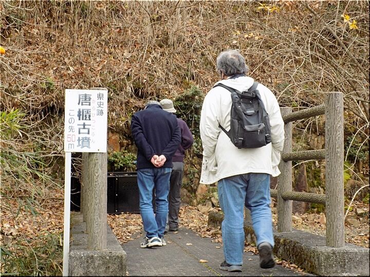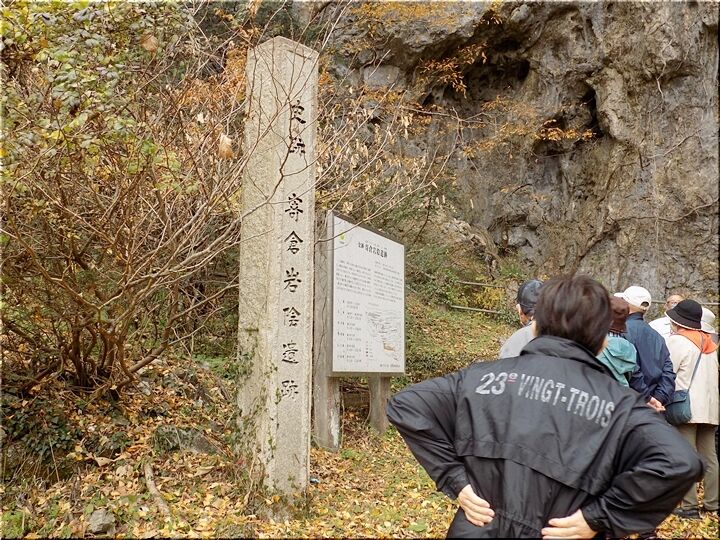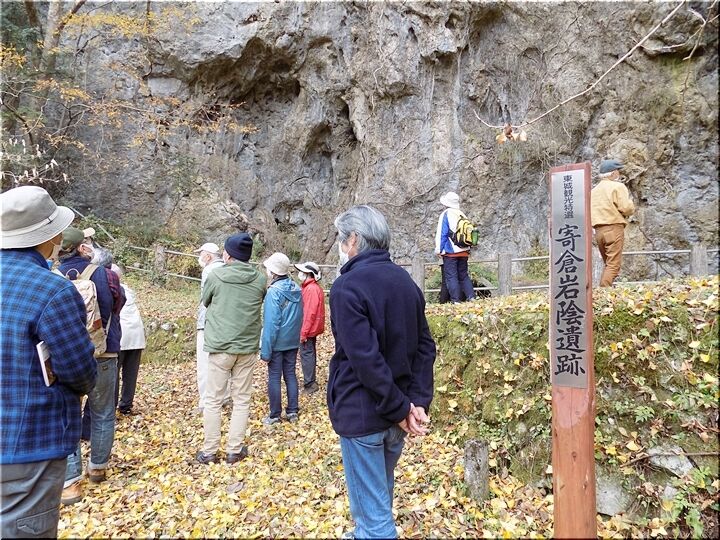 大概の方々は、「白雲洞」・「雄橋」に向かわれますけど、GONsan達は、白雲洞への遊歩道入口を『← 史跡 寄倉岩陰遺跡 0.2km』の標識に従い左折です(^.-)☆